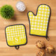 Yellow Gingham Plaid Checkered Monogrammed Oven Mitt & Pot Holder Set