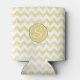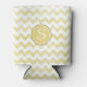 Yellow Glitter Chevron With Monogram Can Cooler