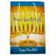 “Peace, love & light.” A close-up photo illustration of a bright, colorful, yellow and gold artsy menorah helps you usher in the holiday of Hanukkah in style. Feel the warmth and joy of the holiday season whenever you use this cute and fun personalized medium size gift bag. Matching cards, postage, stickers, pillows, housewares, totebags, and other products are also available in my “Hanukkah Colorful, Artsy Menorah” store collection. Turns a great present into something even better!