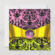 YELLOW GOLD RIBBON PINK BLACK DAMASK MONOGRAM INVITATION