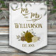 This pennant flag is beautiful, stylish, and fun. Designed to celebrate the newlyweds, it features an elegant boho chic design with a cluster of hand painted watercolor roses in shades of yellow, gold, and ochre. The text reads: Mr. and Mrs. with the couple's last name as well as a cute "established" spot for the wedding year. Wonderful as decor for the wedding reception, or as a gift for the new couple.