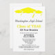 This vertical format minimalist class reunion invitation design features black and yellow text on an all white background with three yellow graduation caps as the top border. Personalize your information, remove information or edit using the design tool to select a font color, size, and style your prefer.