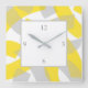Yellow Gray Acrylic Abstract Brushstrokes Square Wall Clock