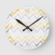 Yellow Gray Chevrons Ikat Pattern Round Clock