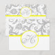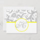 Yellow & Gray Victorian Damask Monogram RSVP Reception Cards. Make a statement on your big day with our Gray Victorian Damask with Yellow Trim Monogram RSVP Reception Cards! Add a touch of sophistication to your wedding with these beautifully designed cards that feature a classic Victorian Damask pattern in gray, accented with a bright pop of yellow trim. Make your RSVP cards truly special with a personalized monogram that showcases your unique style. Add that extra touch of elegance to your wedding. #WeddingElegance #StylishInvites #PersonalizedMonogram.