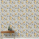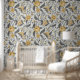 Yellow & Gray Jacobean Floral Pattern Wallpaper
