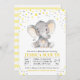 Yellow Gray Neutral Polka Dot Elephant Baby Shower Invitation