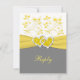 This romantic and chic yellow, grey, and white floral wedding R.S.V.P. card has a PRINTED yellow ribbon with a PRINTED joined hearts diamond jewels and faux yellow glitter brooch on it that matches the wedding invitation shown below. All text and the paper choice is customizable. ***PLEASE NOTE there are no raised elements on this card. Everything is printed flat. ***PLEASE NOTE that if you change the font or size of the font, it may alter how your invitation prints. It will print the way you see it on your monitor, so if you have alignment issues, or sizing problems, please contact me for help. I will not see your invitation once you order it, and Zazzle will NOT edit anything (typos, alignment, etc.). If you require assistance or would like any other matching items, please email your request to niteowlstudio@gmail.com.