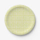 Custom designed paper plates with a yellow Greek key pattern. Add text and images by clicking the "Customize It" button below the product image.
