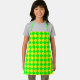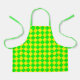 Great color and even though I ordered the kid size, it covers well enough to use during the holidays. I am not a big woman and prefer a shorter apron. I stand 5"6" and the length of the garment goes to mid-thigh. The tie straps fit well at my waist and even though there is no neck strap adjustment, the opening is plenty big enough. I am happy with the size and fit. I am sharing my apron with my 10 year old grandson, too! The color is vibrant and looks good, as shown on the website. The stitching looks strong and reinforced. Photographed is front side and back side of the apron, reinforced straps and coloring. My phone camera may not be the best at showing the details.