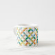 Colorful circular patterned bold expresso mug in many colours including golden yellow, orange, green, brown, blue and white. Designed by Sarah Trett.