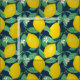 Yellow Green Navy Blue Lemon Pattern Fabric