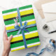 Yellow and green Stripes divided by a thin line of black and white stripes lines surface pattern design
