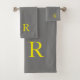 Yellow Grey Gray Monogram Initial Modern Cute Bath Towel Set