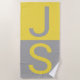 Yellow & Grey Modern Initials Monogram Beach Towel