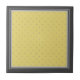 These fun decorative tiles feature a yellow with tiny grey polka dots pattern in the center. The edge is bordered in an alternating dark and light grey.