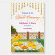 This festive design captures the true spirit of the Haldi and Mehendi pre-wedding events. It features a bright watercolor yellow background, traditional marigold garlands, lush green tropical leaves, and charming peacock illustrations that nod to cultural heritage. This sign creates a joyful, celebratory atmosphere.