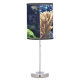 I have purchased other similar lamps. I use them as extra light for guest's. They are inexpensive, easy to assemble and good height for reading. I like that there are many pre-made shades to choose from and that, like this one, you can use your own art.