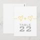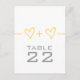 Cute and whimsical Heart Equation Wedding Table Number Postcard in yellow featuring a fun math equation "joining" two hearts/people. This nerdy design is a charming choice for a math loving couple or any couple wanting something simple but with a hint of whimsy. Easy to customize, simply add the appropriate table number(s) in the space provided. Click "Customize It" to find more personalization options.
