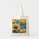 A tote bag printed with a hand-drawn yellow hibiscus design.