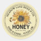 Personalize with your apiary name, product (honey), net weight, and beekeeper name and address. Vintage Sunflower illustration on a yellow background. Realistic honeybee hovering alongside flower.
