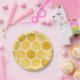 Yellow paper plate. Honeycomb / hexagon pattern paper plate.