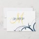 Yellow Initial, Blue Swirls Wedding RSVP Card