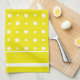 A cheerful Kitchen Towel or Tea Towel in trending Lemon Zest yellow with white polka dots and stripes.