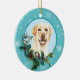 Yellow Lab Evergreen Blue Snowflake Ceramic Ornament