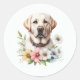 Yellow Lab Floral Classic Round Sticker