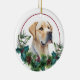 Yellow Lab Retriever Evergreen Berry Wreath Ceramic Ornament
