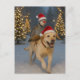 Humorous Christmas card featuring a yellow Labrador and a Partridge in an apparent truce over the Christmas period! The Partridge is riding the yellow Labrador in a snowy scene with Christmas trees twinkling in the background.