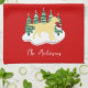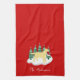 Yellow Labrador Christmas Evergreen Trees Kitchen Towel for dog lovers who love Labradors. Beautiful Yellow Labrador Silhouette design with Santa Hat. Snow and evergreen trees. Created by Naomi Ochiai.