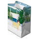 Yellow Labrador Christmas Winter View Gift Bag for dog lovers who love Labradors. Beautiful Yellow Labrador Silhouette design with Santa Hat. Snow and evergreen trees. Created by Naomi Ochiai.