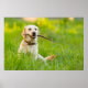 Yellow Labrador Plays Fetch With Stick Poster