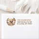 The left side of these return address labels feature a portrait of a beautiful golden yellow Labrador Retriever dog. The image is enclosed within a pretty autumn floral and leaf wreath in tones of brown, tan, and cream. Your custom text is in brown and gold brown at the right.
