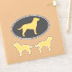 Oval and die cut sticker set. These durable dog silhouette decals are waterproof and scratch resistant. Stick these Yellow Lab vinyl stickers to your laptop, phone, notebook, water bottle, helmet, skateboard, or even your car. Visit Jenn’s Doodle World for even more dog breed vinyl decals and Yellow Labrador Retriever lover’s gifts.