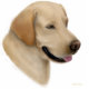 Original fine art design of a Yellow Lab or Labrador Retriever by designer Carolyn McFann of Two Purring Cats Studio on a quality ornament for dog fans.