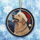 Yellow Labrador Santa Hat Christmas Night Ceramic Ornament
