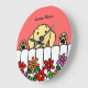 Funny & Cute Yellow Labrador Cartoon wall clock. An innocent looking Yellow Labrador is watching you behind the flowerbed and he/she looks like he/she wants to say something to you! You can customize text. Whimsy and funny Labrador Retriever Dog Cartoon created by Naomi Ochiai from Japan. Nice gift for dog lovers who love Yellow Labradors.
