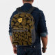 This fun backpack design features a yellow leaf skeleton pattern over a black background with black on the lower sides and bottom. Personalize or remove the initial letter monogram that is centered in the leaf on the front pocket or use the edit design tool to select a font style, size, and color you prefer. A fun design for a gift idea used for back to school, diaper bag, picnics, the beach, travel and more.
