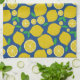 Yellow Lemon Citrus Pattern on Blue Kitchen Towel