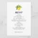 Impress your guests with an elegant yet affordable Lemon-Themed Wedding Menu that beautifully complements your wedding decor. With a delightful design featuring vibrant lemons and a touch of greenery, these menus are perfect for adding charm to your tables without stretching your budget.