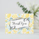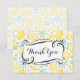 A card with a fancy whimsical frame on the front holds the words Thank You. You can also hange the wors to suit your unique occasion. Designed with a a quaint and cute pattern composed of yellow lemons and pastel blue flowers in a hand drawn illustrated style. The back has the same pattern, but with a semi-transparent overlay on top so that you can write a personal message if you like.