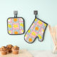 Yellow Lemons Pink Stripes Oven Mitt & Pot Holder Set