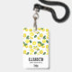 Personalized name badge with a cute pattern of yellow lemons with green leaves and fresh cut lemon slices.