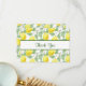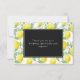 A thank you card with a message on the back. Designed with yellow lemons and green leaves, in a repeating pattern.