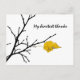 Stylized photo of a lime, linden, tilia tree branch of black color and a single yellow leaf. Autumn, fall theme. Season and Thanksgiving greetings and gifts. Text My heartest thanks. You can change or delete the text
