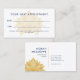 Yellow lotus appointment card for a massage therapist, beautician, spa salon or more with a very pale yellow of a pink lotus beneath the navy blue text. Add your contact information to the back.