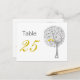 a gray whimsy love tree with two yellow love birds on tree branch, mod and trendy wedding table numbers cards. Matching products also available.. Change Table number on each card and then do "add to cart"